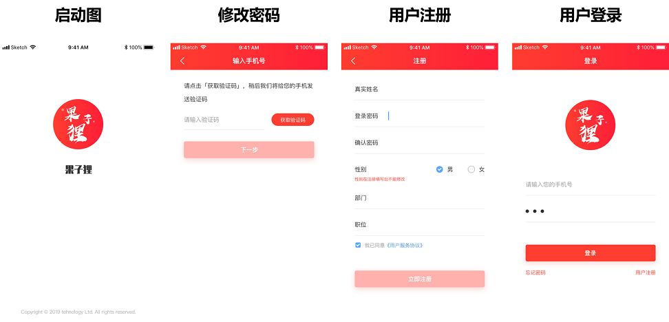1、啟動(dòng)頁、用戶注冊(cè)、修改密碼、用戶登錄等頁面