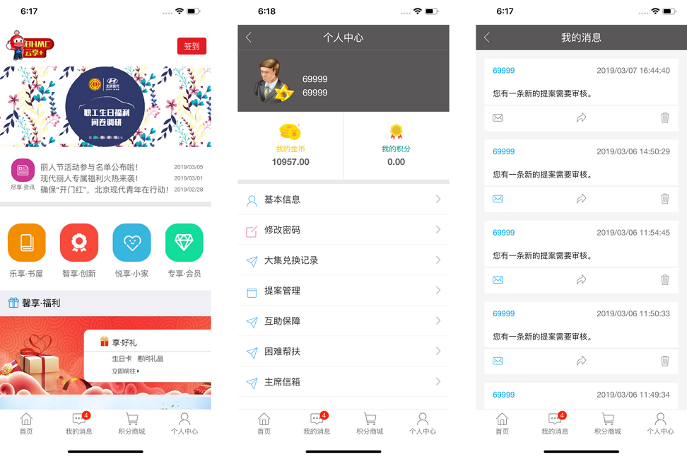 北京現(xiàn)代委托北京合合開發(fā)并內部上線其內部員工管理的APP,主要包括書屋、會員積分、積分商城、困難幫扶等員工管理功能。