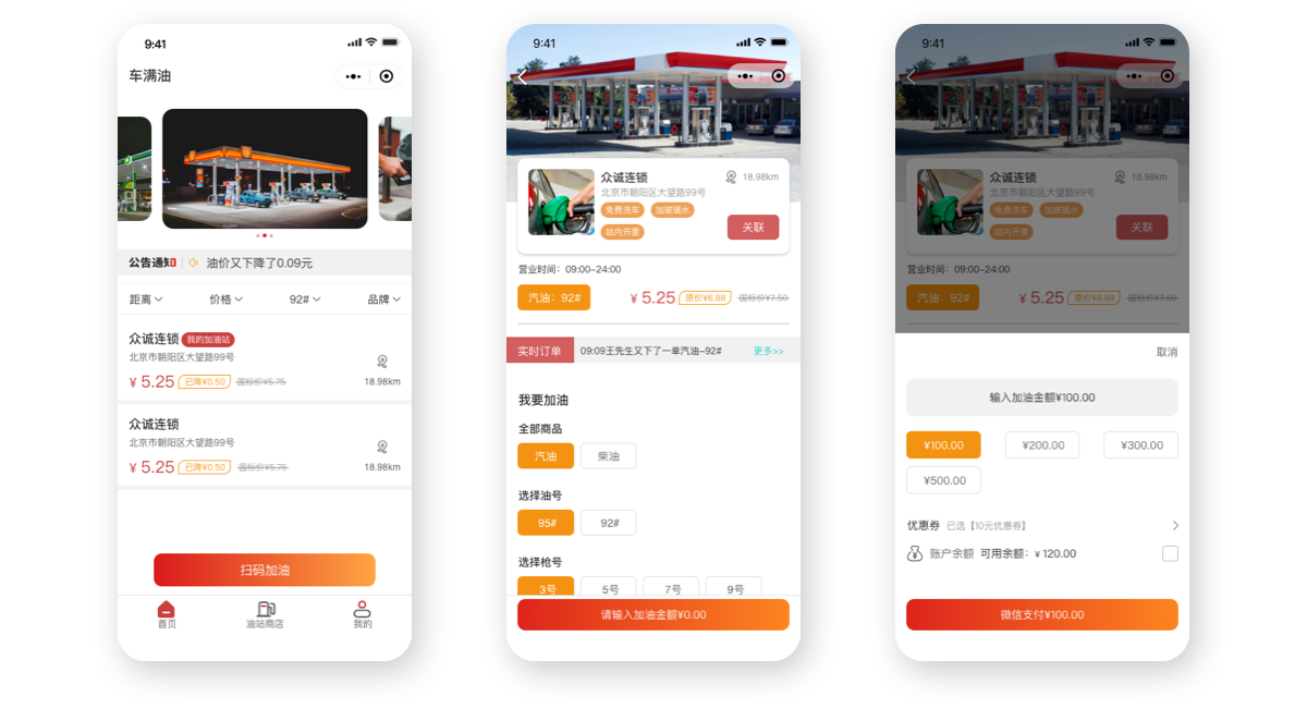 車滿油小程序是油滿滿(北京)科技有限公司委托北京合合科技開發(fā)的加油站的小程序。主要功能包括:油站搜索、線上支付、預(yù)約加油、我的優(yōu)惠券等等。如今汽車已經(jīng)是我們生活中必不可少的部分,汽車數(shù)量不斷增多,家庭擁有汽車已經(jīng)不是難事。汽車相關(guān)的服務(wù)也非常多,日常加油的APP和小程序可以給用戶帶來非常便捷的服務(wù),這也是做這個小程序的初衷。