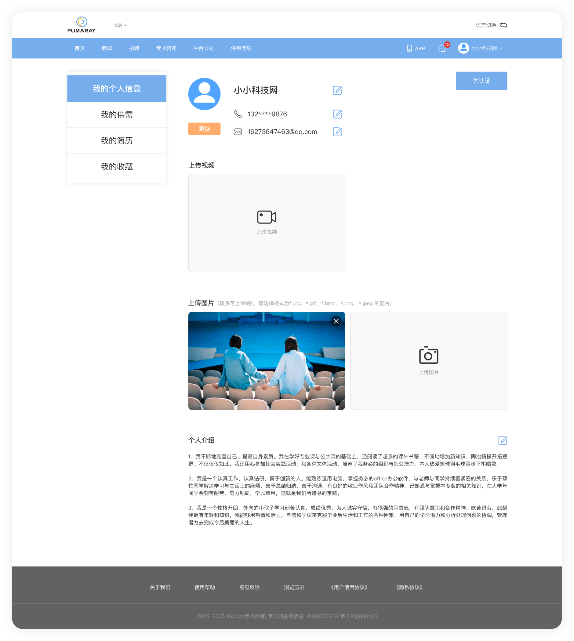 標瑪光圈(PUMARAY),是一款針對非洲那邊用工的招聘平臺。針對的痛點就是客戶在非洲招聘華人成本比較高,做個招聘平臺,企業(yè)可以發(fā)布招聘需求, 還有供需求信息在平臺發(fā)布,幫助華人和招聘需求方建立溝通橋梁,方便信息通暢。