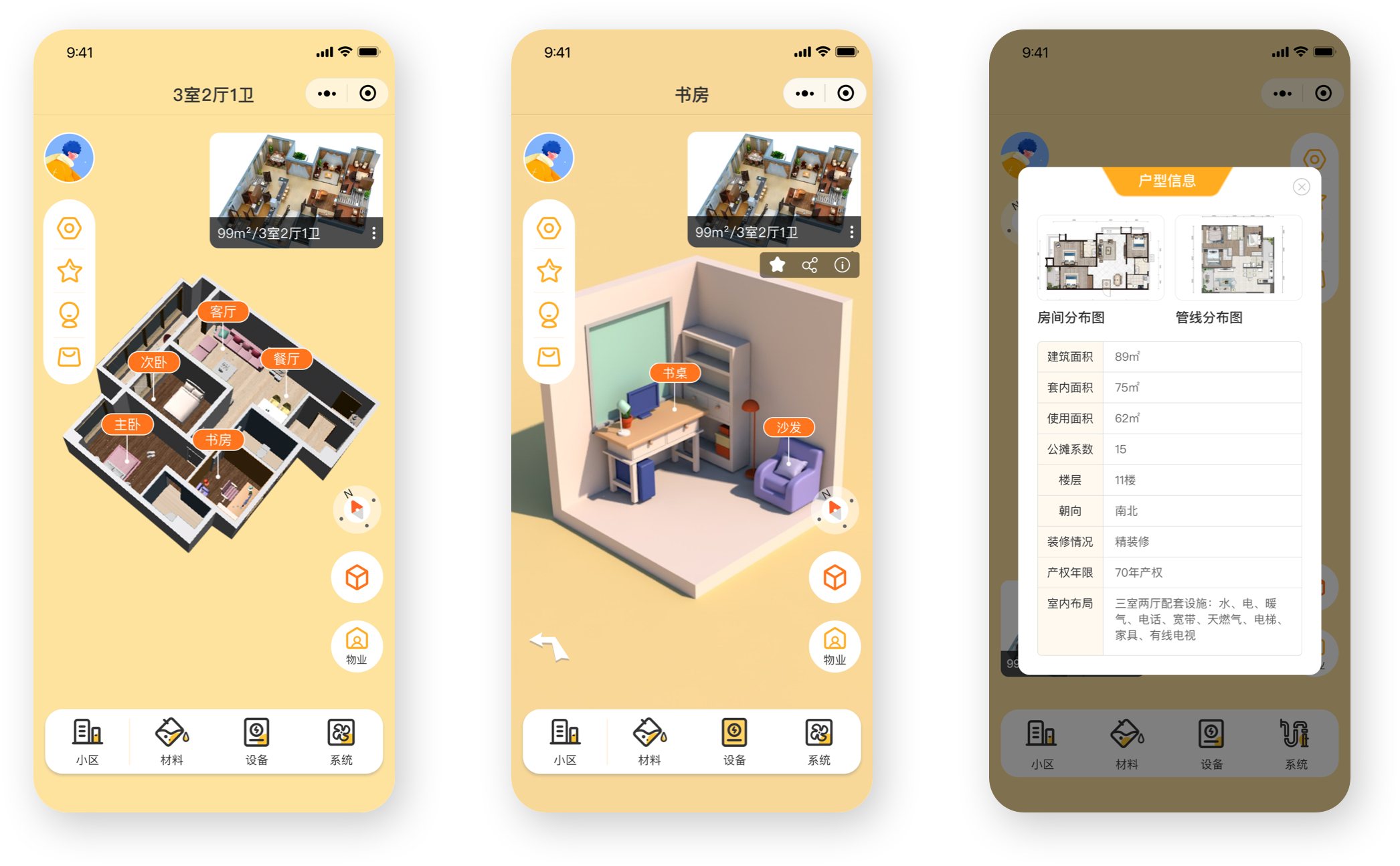 我們可以看到,很多房地產(chǎn)中介機(jī)構(gòu)都通過(guò)VR看房,3D虛擬來(lái)幫助用戶實(shí)現(xiàn)在線看房來(lái)促進(jìn)市場(chǎng)活躍,促進(jìn)交易。在線的互聯(lián)網(wǎng)+3D看房利用越來(lái)越廣泛。該3D虛擬社區(qū)小程序項(xiàng)目開發(fā),也是幫助社區(qū)實(shí)現(xiàn)3D模擬,業(yè)主可以在線查看自己的戶型,在線進(jìn)入房屋可以查看家具,家電等配套設(shè)施等。