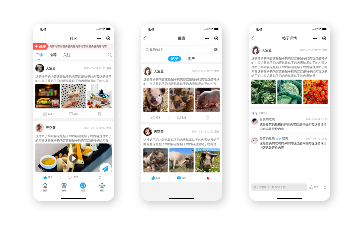 3、認養(yǎng)一頭豬社區(qū)頁面UI展示